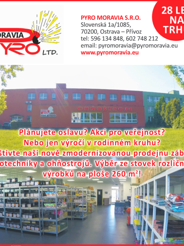 Plánujete oslavu? Akci pro veřejnost? Nebo jen výročí v rodinném kruhu? Navštivte naši nově zmodernizovanou prodejnu zábavní pyrotechniky a ohňostrojů. Výběr ze stovek rozličných výrobků na ploše 260 m2.