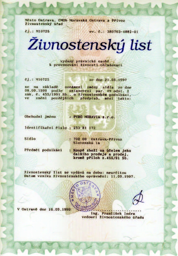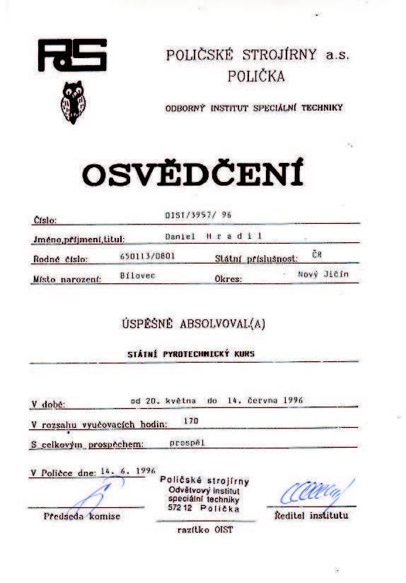 Z Evropy dovázíme mnoho speciálních výrobků, jak pro film, tak pro interiérové a denní ohňostroje. Na českém trhu zastupujeme jako jediní polský ohňostrojařský gigant - firmu Jorge s jeho výtečnými profi pyro-výrobky. V zimní sezóně se samozřejmě věnujeme prodeji zábavní pyrotechniky, u které Vám můzeme poskytnout zajímavé ceny a obchodní podmínky. Distribujeme rakety do plynových pistolí a vyrábíme plastové mozdíře, které máme v České republice patentovány. Samozřejmě, že dovážené výrobky necháváme průbězně certifikovat a ověřujeme jejich kvalitu na základě měrných listů.